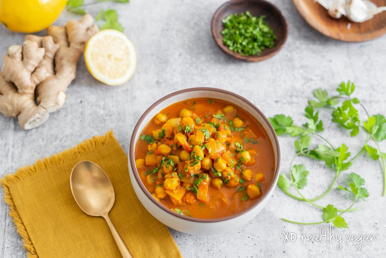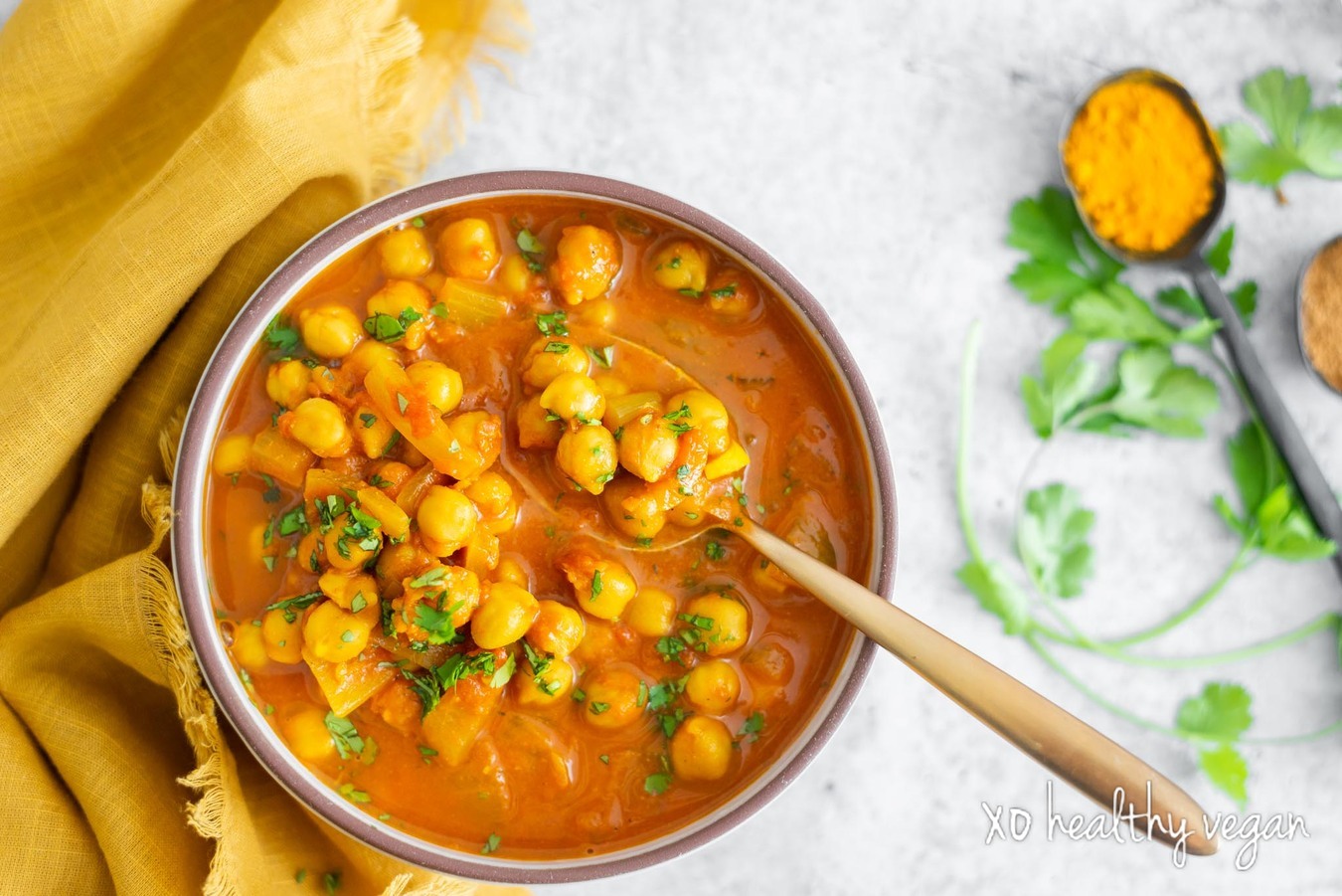 >> I like to serve my chana masala with quinoa or steamed greens. You can even add a handful of greens during the last few minutes of cooking!- >> Turmeric adds color, flavor, and health benefits. I add turmeric to my diet any chance I get!